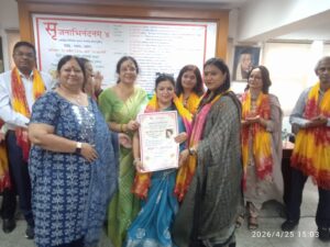 नई दिल्ली। नई दिल्ली स्थित हिंदी भवन में वाङ्मय कला संगम के तत्वावधान में आयोजित सृजनाभिनंदनम् चतुर्थ संस्करण में देश भर से साहित्य, कला, रंगमंच, योगायुर्वेद जगत की ख्यातिलब्ध हस्तियों की उपस्थिति रही।
