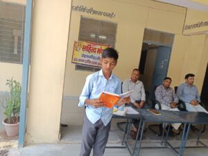 साहित्य मंच -टोडारायसिंह जिला टोंक के तत्वावधान में विश्व धरोहर दिवस के अवसर पर शहीद ओमप्रकाश परिहार राजकीय उच्च माध्यमिक विद्यालय – गाडो़ली ब्लाक जहाजपुर जिला भीलवाड़ा में वरिष्ठ साहित्यकार एवं प्रशासनिक अधिकारी डॉ सूरज सिंह नेगी साहब द्वारा संपादित पुस्तक, लिख दूं पाती यादों के गलियारों से, छात्र द्वारा अवधेश पारीक, टोडा रायसिंह के प्रकाशित पत्र का वाचन किया गया।