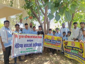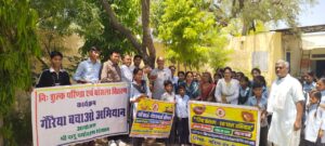 स्कूली विद्यार्थियों को विलुप्त होती गौरैया चिड़िया के पोस्टर दिखा कर अपने मकान की छत पर थोड़ा सा दाना पानी रखने के लिए प्रेरित किया गया।