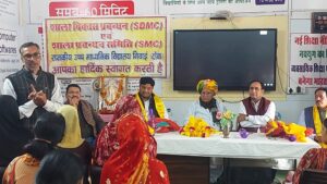 मुख्य अतिथि नितिन जैन छाबड़ा ने सदस्यों को संबोधित करते हुए कहा कि “विद्यालयों की बेहतरी हम सबके सामूहिक प्रयासों से ही संभव है।” वहीं किशनलाल चौधरी ने विद्यालय विकास में सभी के योगदान की अपेक्षा व्यक्त करते हुए संकल्प दिलवाया।