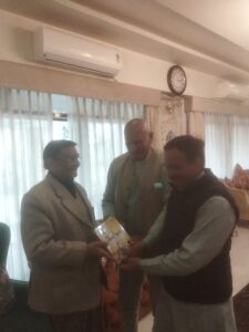 यह भेंट अत्यंत सौहार्दपूर्ण एवं विचार-विमर्शपूर्ण वातावरण में सम्पन्न हुई, जिसमें समाज, संस्कृति और मूल्यों से जुड़े विषयों पर सकारात्मक संवाद हुआ। डॉ. अशोक चौधरी ने इस अवसर पर निवर्तमान सांसद श्री हरीशपाल जी तथा उनके सुपुत्र श्री नीरजपाल को अपनी स्वरचित पुस्तक ‘हमारे पूर्वज और हमारे जीवन मूल्य’ भेंट की।