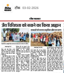 उपवन संरक्षक, टोंक के निर्देशन में तथा श्री दादू पर्यावरण संस्थान, टोंक एवं साहित्य मंच–टोडारायसिंह के तत्वावधान में पीएम श्री राजकीय बालिका उच्च माध्यमिक विद्यालय, टोडारायसिंह में विश्व आर्द्रभूमि दिवस–2026 का आयोजन किया गया।