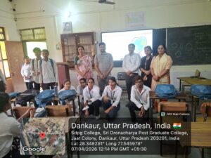 दिनांक 7 अप्रैल 2026 को विश्व स्वास्थ्य दिवस के अवसर पर श्री द्रोणाचार्य पी.जी. कॉलेज, दनकौर में एक जागरूकता कार्यक्रम का आयोजन किया गया। इस वर्ष विश्व स्वास्थ्य दिवस की थीम “Together for Health, Stand with Science” रही।